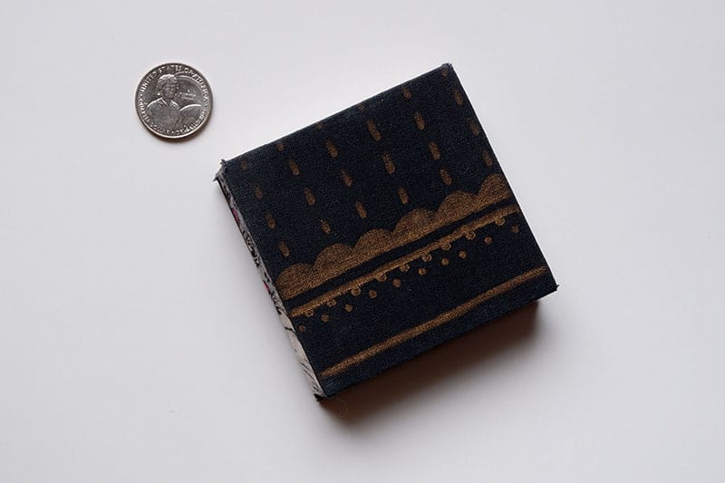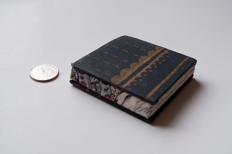 Front and back covers with a quarter for scale